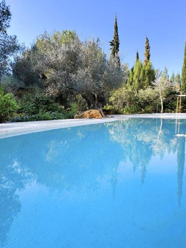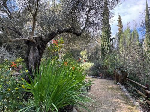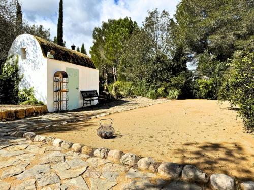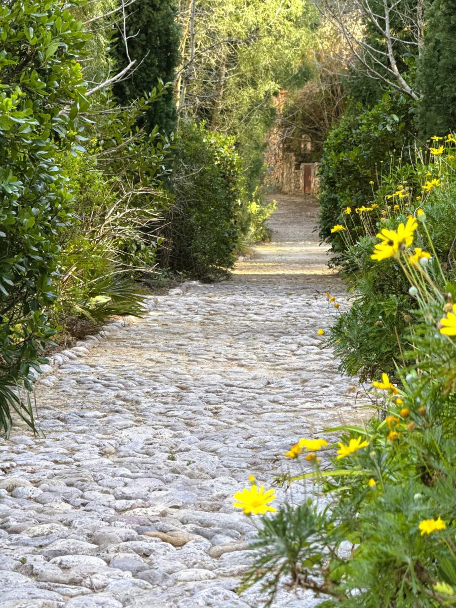 Su frondoso jardín nos da la bienvenida, desplegando ante nosotros sus espléndidos aromas y colores: tomillos, lavandas, higueras, granados… También los pájaros y el borboteo del agua en la acequia nos acogen con sus cantos…