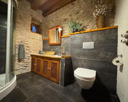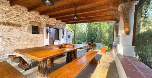 La Masía propiamente dicha es un edificio en piedra vista del siglo XVIII, restaurado respetando la estética de la construcción tradicional; pero acondicionado para garantizar la vida cómoda que todos deseamos. En la restauración se han aportado soluciones bioclimáticas a los desafíos del presente siglo, priorizando la autosuficiencia energética y el respeto por el entorno.